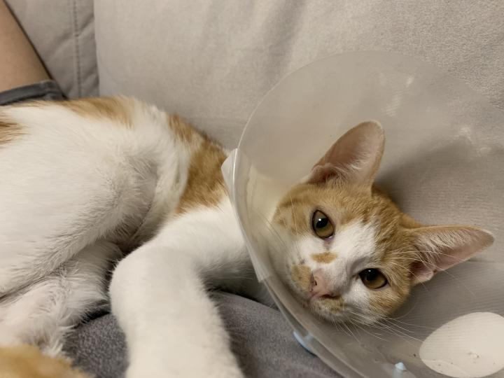 ささみちゃん。🐈茶白の女の子。5ヶ月の鍵しっぽで膝の上に乗って来てごろごろふみふみする甘えん坊さん。大人しくて穏やかで飼いやすい💕