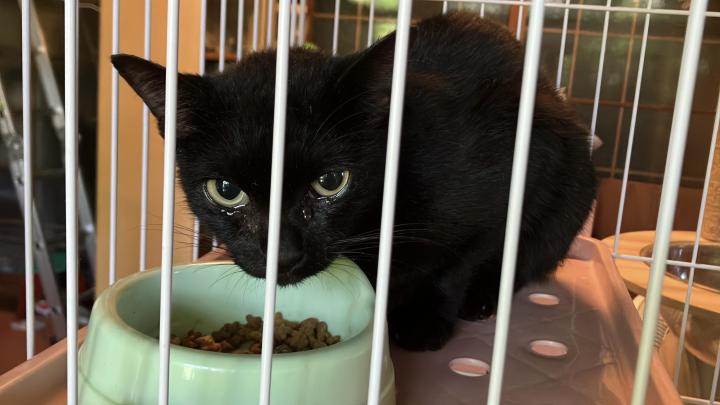 捕獲器の中でカリカリ全部食べて大人しくしてた黒猫ちゃんがいた…