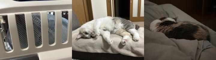 もこもこベッドで昼寝したり、食卓の椅子で就寝したり。