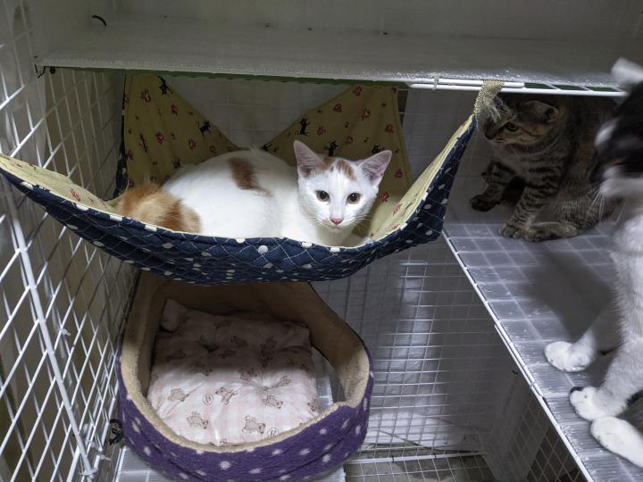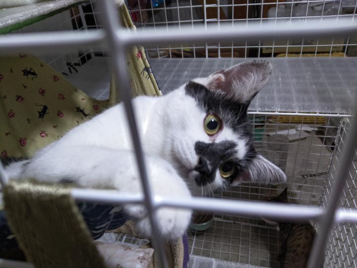 狭いゲージの中ですが、少しは子猫らしく、たくさん食べて、たくさん遊んで、たくさん寝る。そういう生活が出来るようになったのは本当に有難いです。
