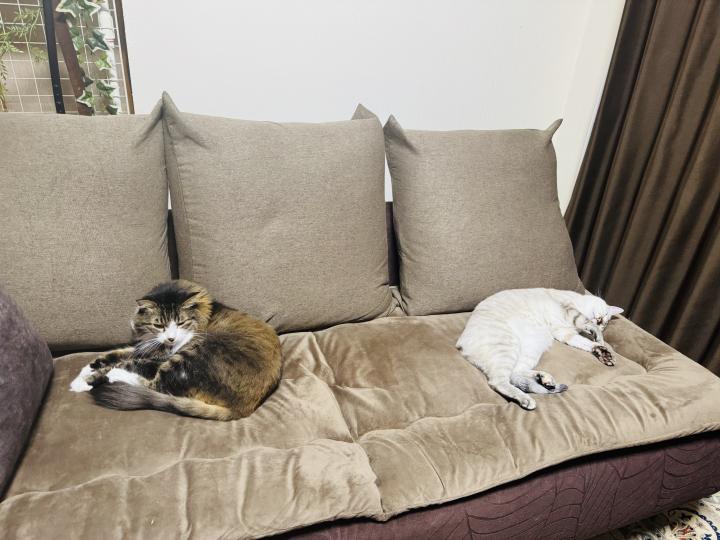 私がごろごろしていたソファで寝ているキララと龍馬