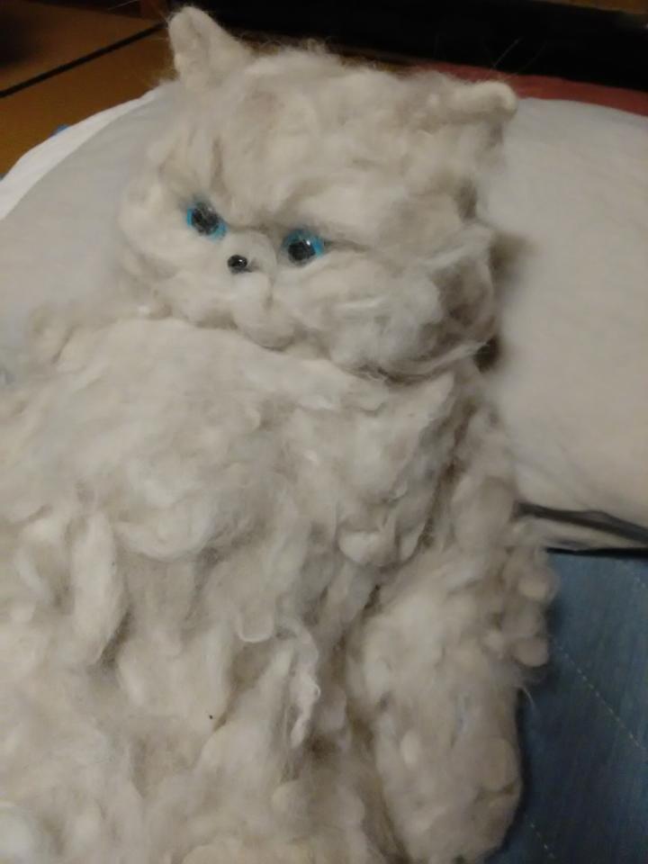 この袋から出て来た綿みたいにゃもの、それは奴隷がグルーミングのときに貯め込んだ、子猫の時から一度も捨てたことのにゃいぼくの毛にゃんだ!