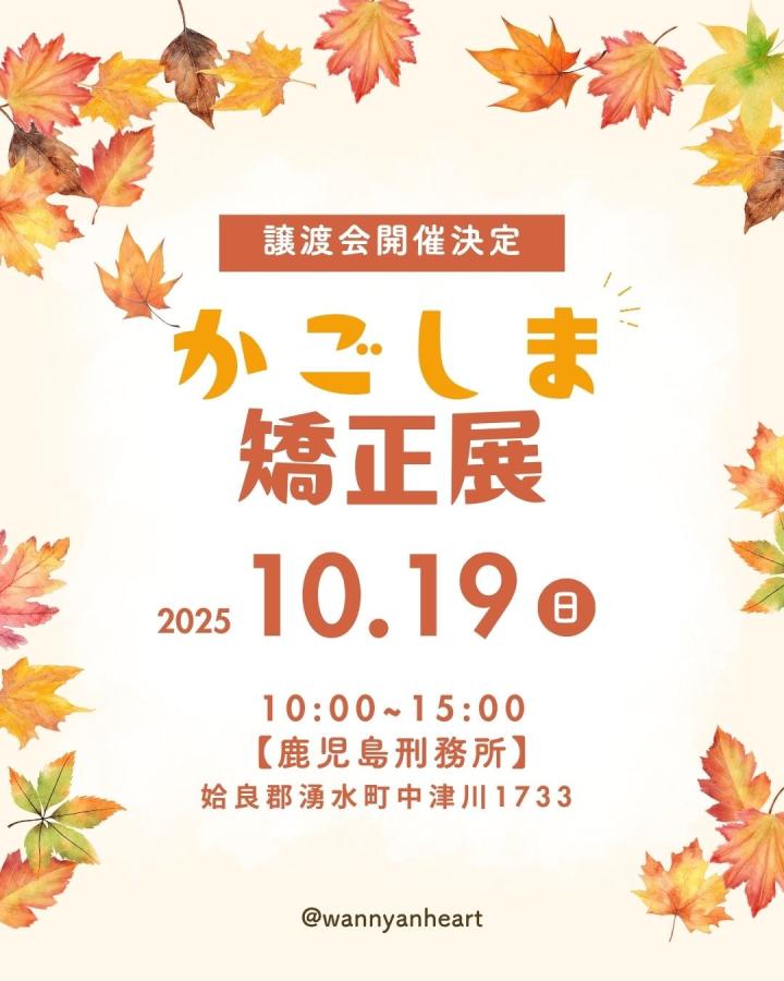 来週は矯正展!鹿児島刑務所でわんにゃんハートの譲渡会しますので、お時間ある方はぜひお越しください、お待ちしています🙇♀️