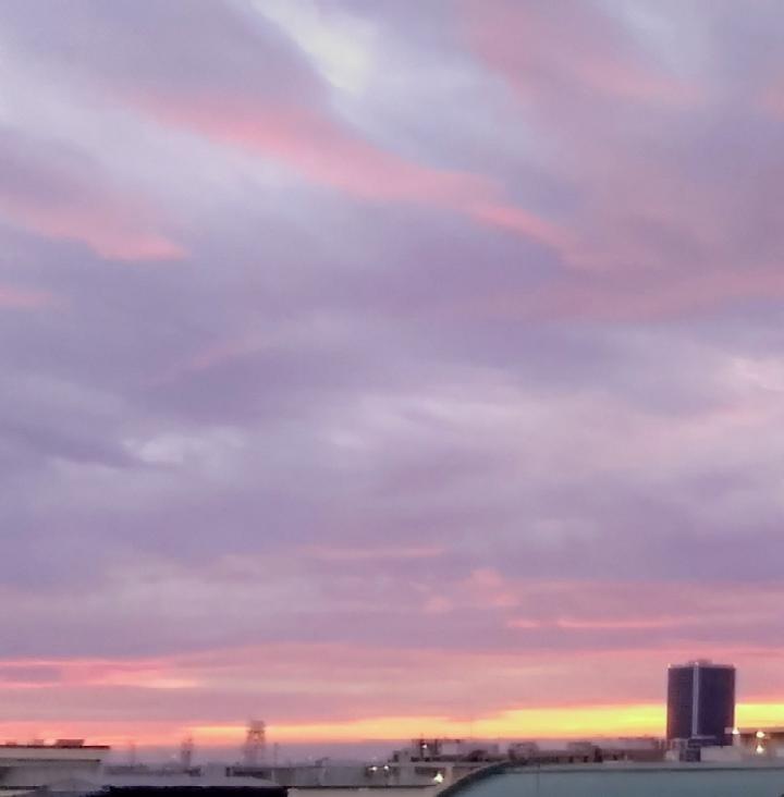朝5時半くらい。野良猫ちゃんのご飯が終って帰るころ、東の空が明るくなっ