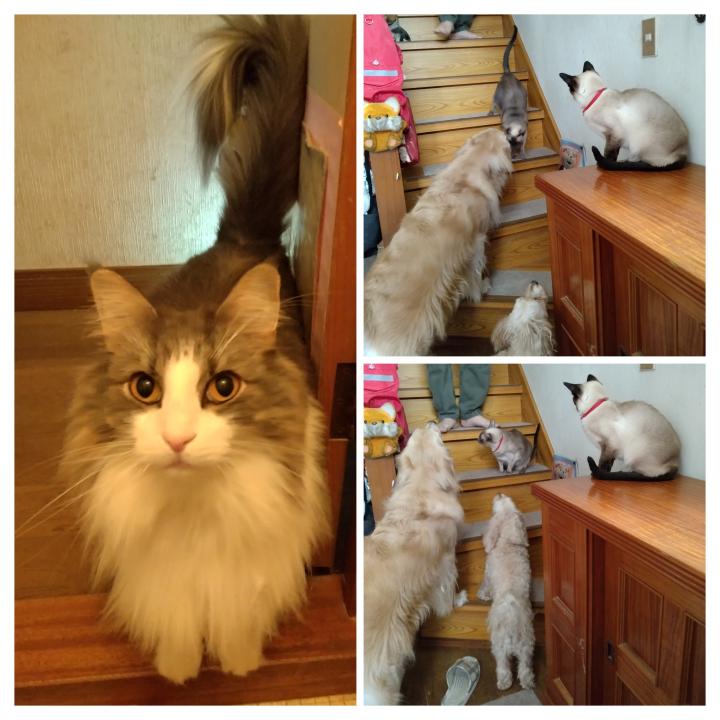 もうひとつは、ルビィ😻が、ゴハンを食べた後、3階に よじ登って寛ぐようになったこと