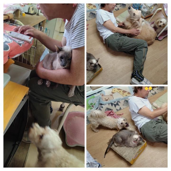 16時すぎ、🐤以外、父ちゃんに 梳かされたり毛玉チョキチョキされたりしてた