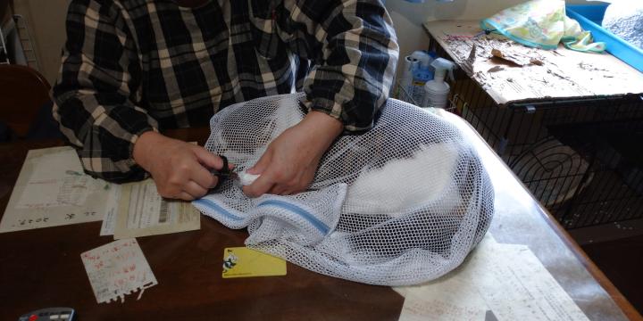 モコ、やっとネットに入れる事が出来て久しぶりのお手入れ✂️