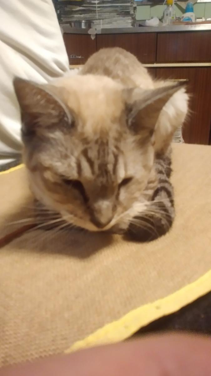 翌朝、行きつけの動物病院を受診。体重は1.8kgほど。猫風邪をひいているらしいが肝機能の数値と白血球の数値が少し高いこととノミがいることを説明された。ノミとりの処置と点滴をしてもらい、目薬をカバンに入れて帰宅した。