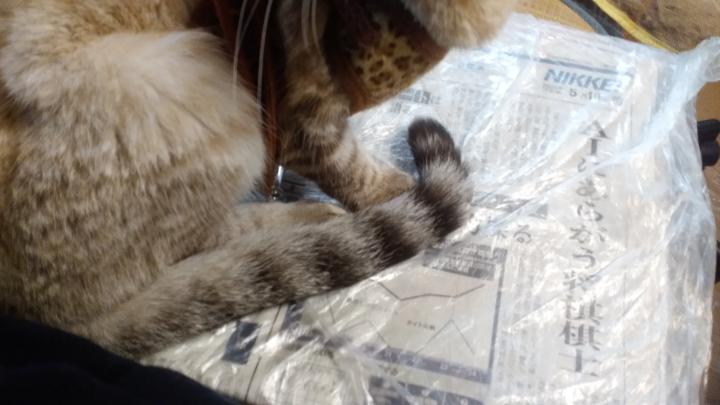 この頃は、体は裏隣の雄猫に似たベージュ色。尾は東隣のサバトラと同じでアライグマのような縞模様だった。