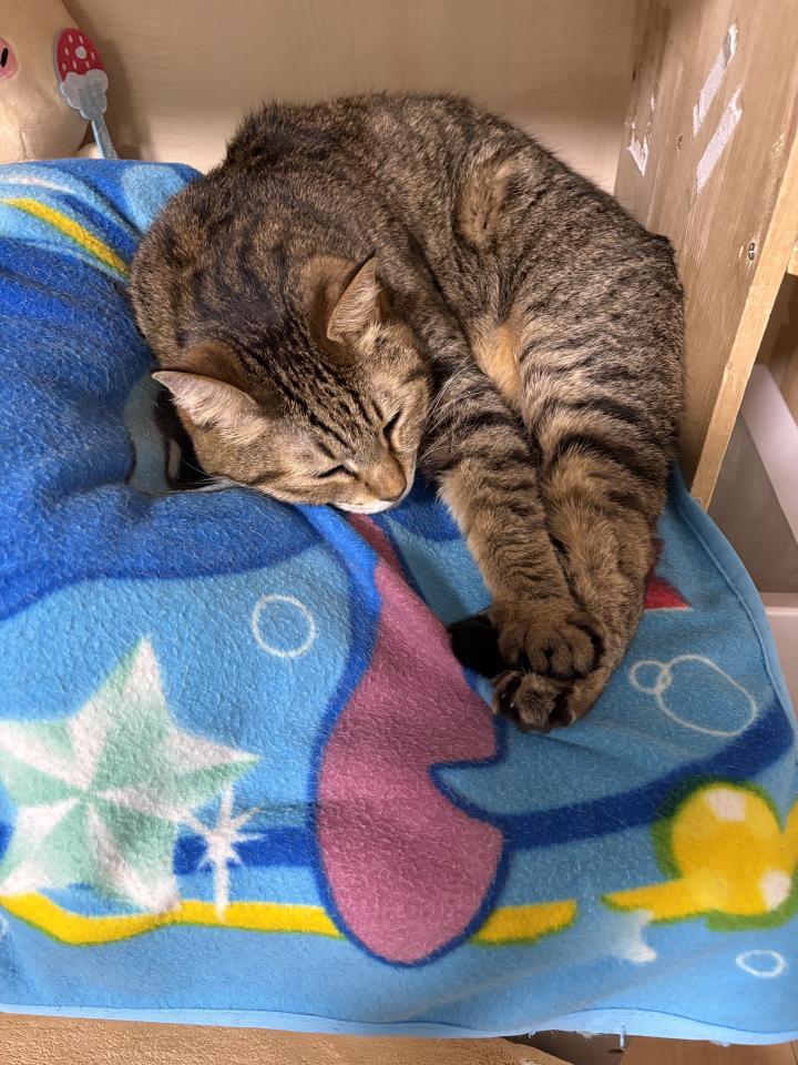 のんちゃんは年中窓際にある猫壱の爪研ぎの中で寝てます…ご飯の時間になっても起きてこない事が多々…