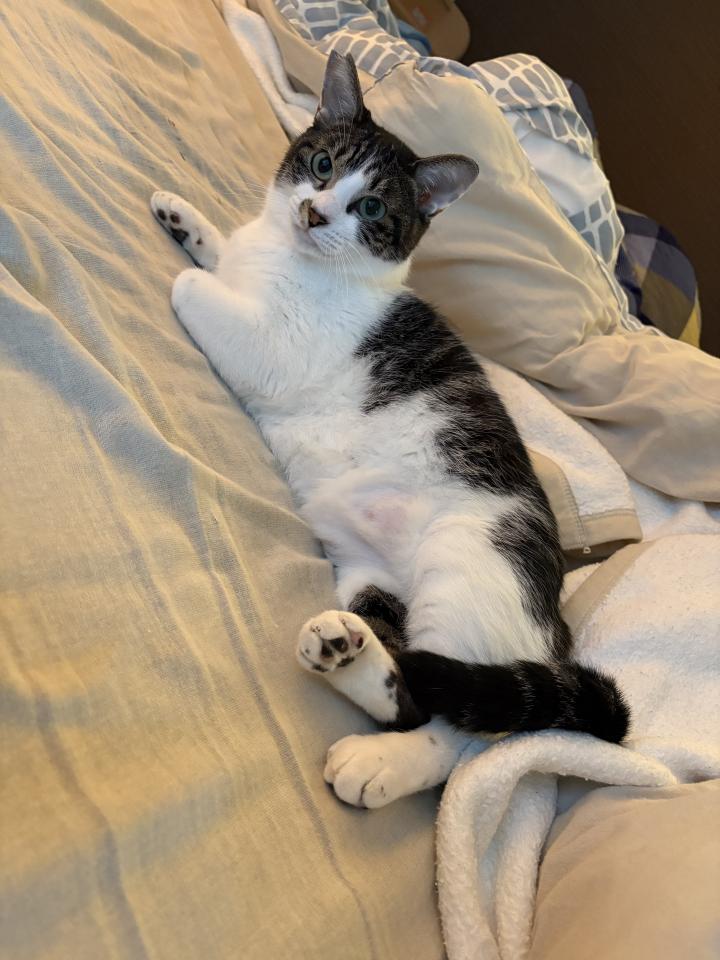私の布団で寝たり(持病があるのでリビングに長座布団とタオルケットを置いてます)