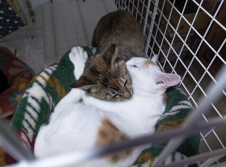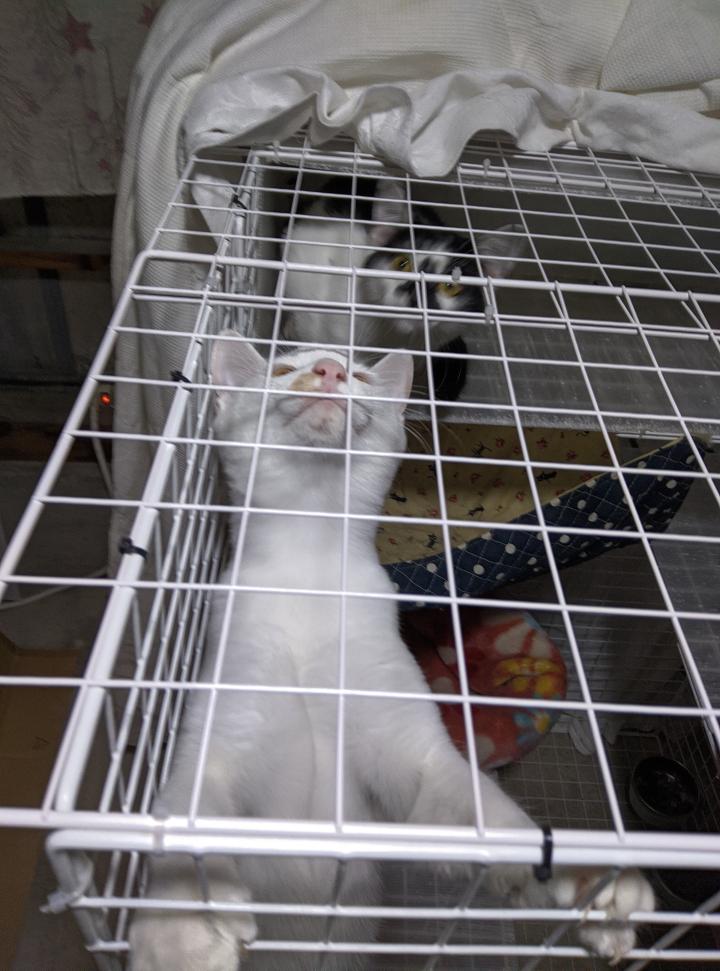 三人とも私がゲージに入ってトイレ掃除をすると、頭にちょっかいを出してくるのですが、初めのころは力加減が分からなかったのか爪を立てて痛かったのですが、最近はソフトタッチになりました。