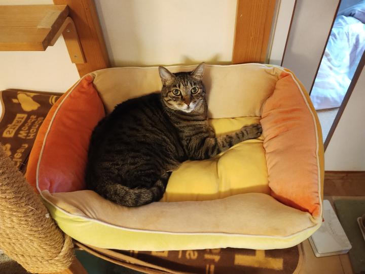 ベッドも新調。今朝見たら、マリンがちゃんと使ってくれてました〜💖😻
