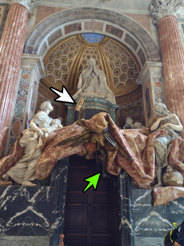 バロック期の立役者ベルニーニ作、サン・ピエトロ大聖堂にあるアレクサンドル7世の墓…珍しく正面まで行けた\(^o^)/