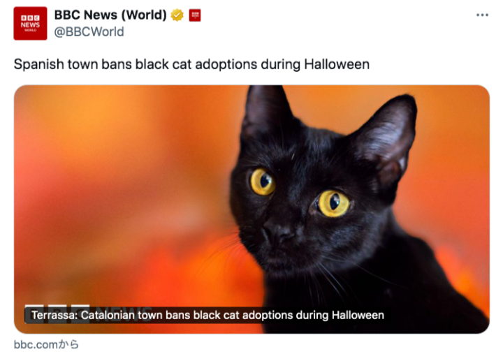 スペイン・カタルーニャ州のテラッサでは、10月6日から11月10日まで、シェルターから黒猫を迎えることを禁止
