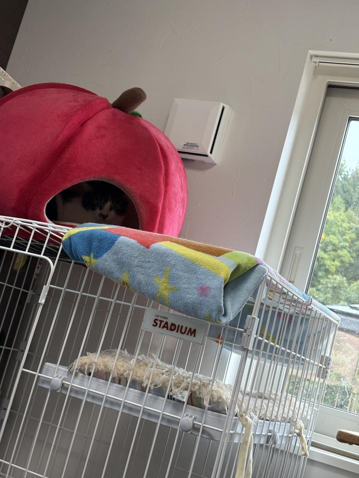 警戒体制でゆっくりゆっくり部屋を嗅ぎ回った後🍎への道筋を確認し始めたので