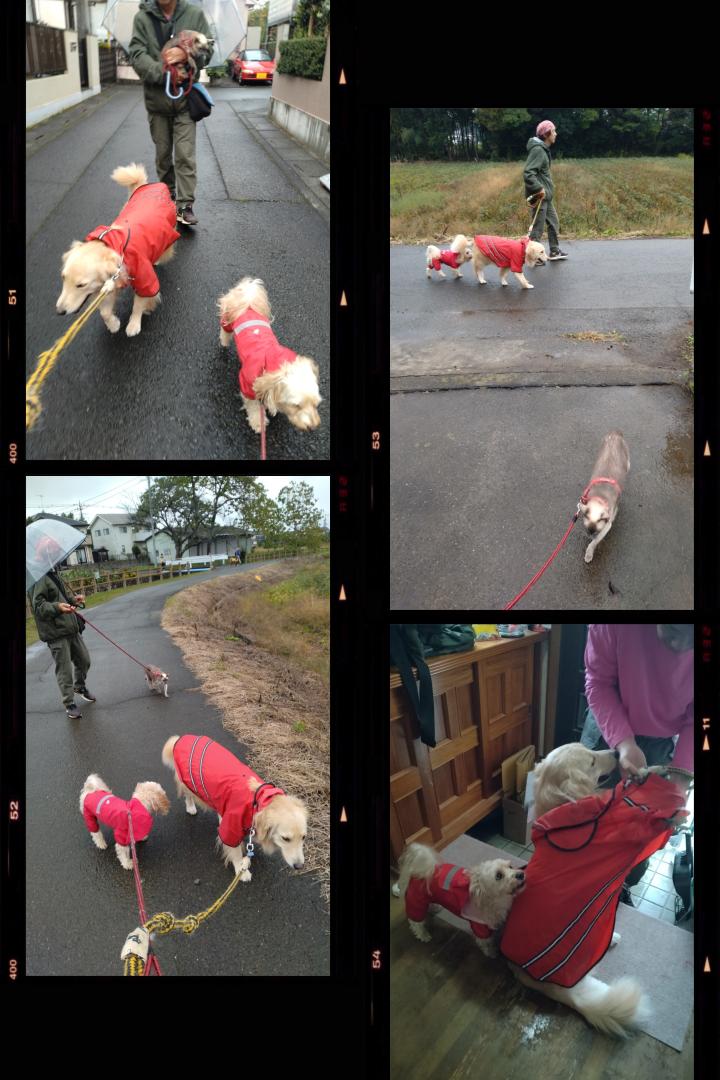遠くに、黄色い雨合羽を着た大きなワンコが・・