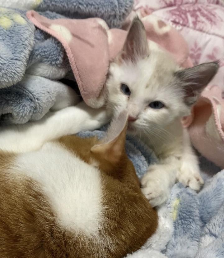 今までも幸せでしたが、先輩にゃんこのミルク(12才♂)とイチゴ(12才♀)の姉弟とララちゃん(1才6ケ月♂)とナナちゃん(2か月♀)のにゃんこ家族や旦那ちゃん、シェアメイトのUさんとの三人と四にゃん家族が揃っての毎日が一番幸せです😀😀😀