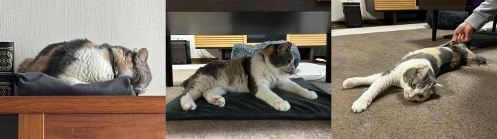 ホットカーペットでくつろいだり、サプリを摂ったり、寝室に来たり。