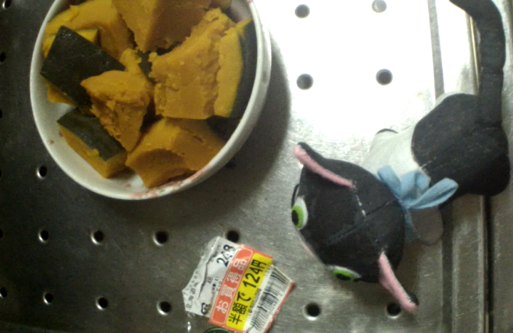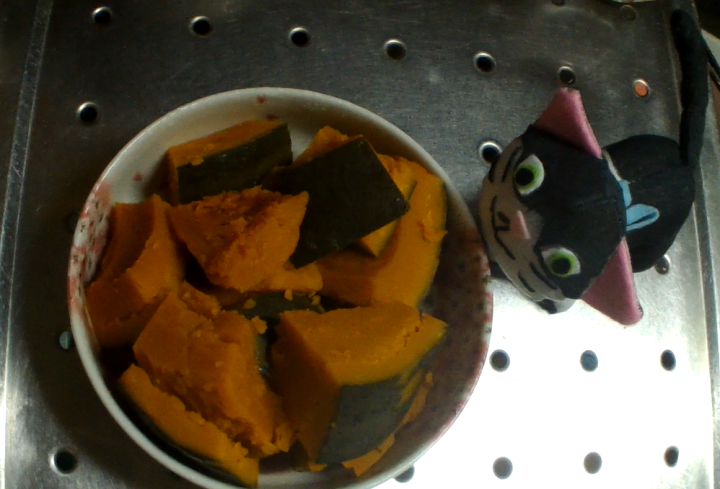 傷んだ部分と、種とワタを取って、蒸しただけですが…美味しいかぼちゃでした!