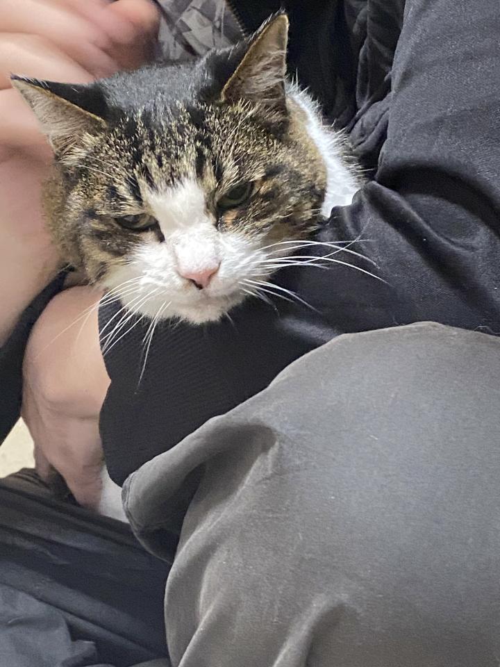 旦那も「お前が乗ってきたのに……」となっていました。寒くなってきたので毛がもふもふになり