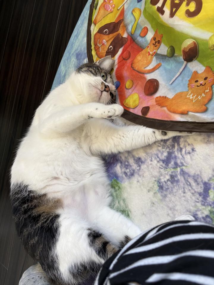 いつもは何回か捕まえると、ドテンと座ってしっぽをカミカミするのですが