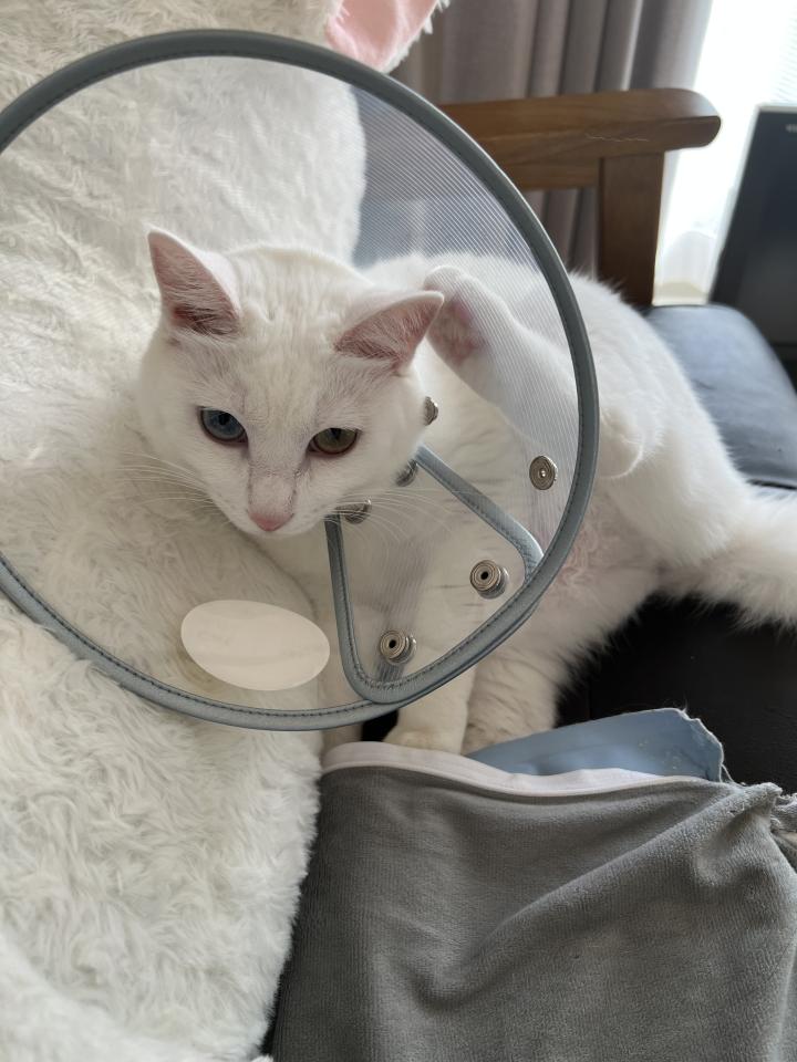 エリザベスカラーしなくちゃだけど、めちゃくちゃ嫌みたいで1時間くらいドタバタしてたら外れてた、、、可哀想だからもうできない。