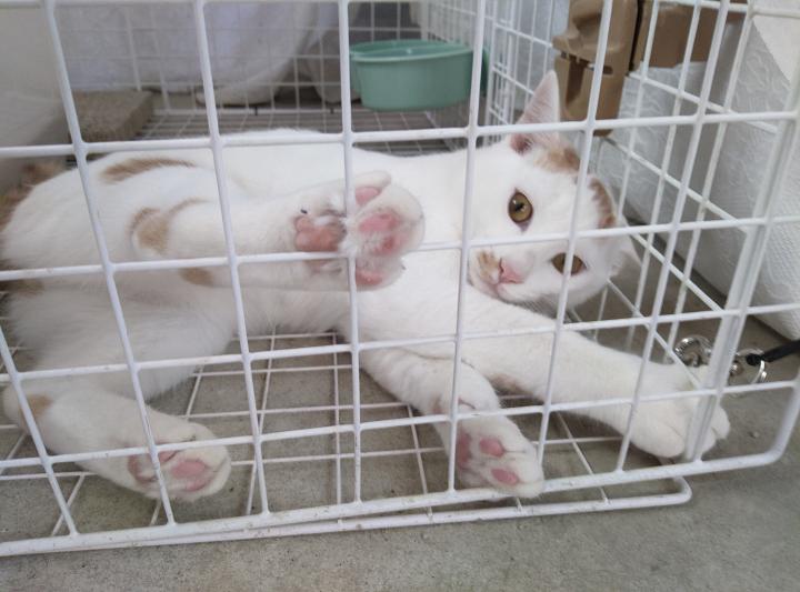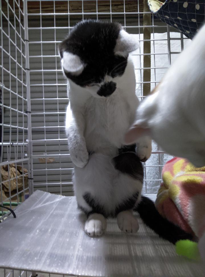 作業の合間、コウが珍しい姿で一階で転がって鳴いているので、可愛いなぁと思って写真を撮っていると、どうやら爪が引っかかって取れなくなり助けを求めていたみたい。