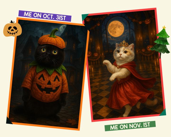 別に何にもするわけではないけれど、毎年、ニャンズたちをハロウィンコラージュして楽しんでいます。