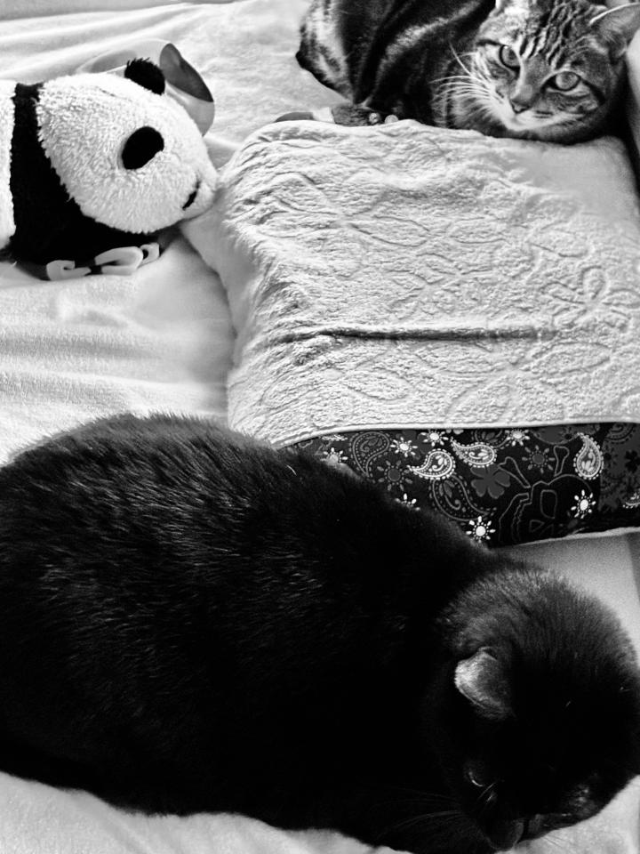 ボクはくっついて寝たいけど、ミリねぃちゃん、おこりんぼなんだもん。