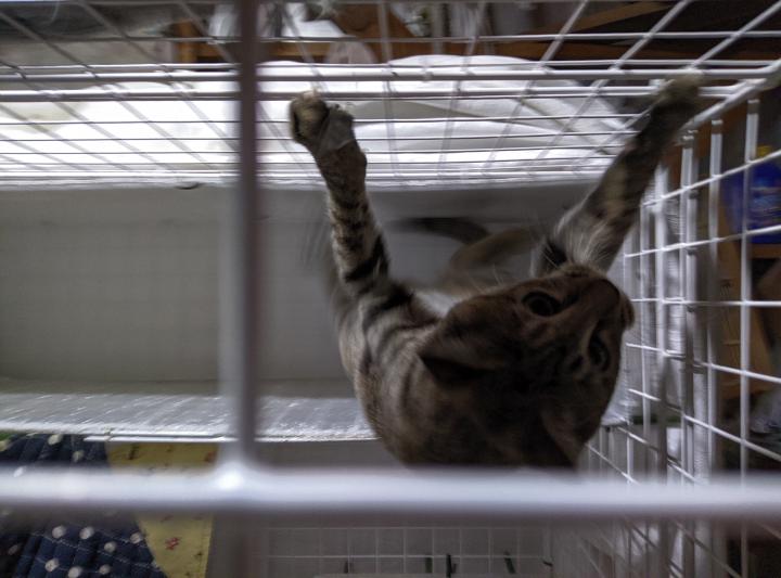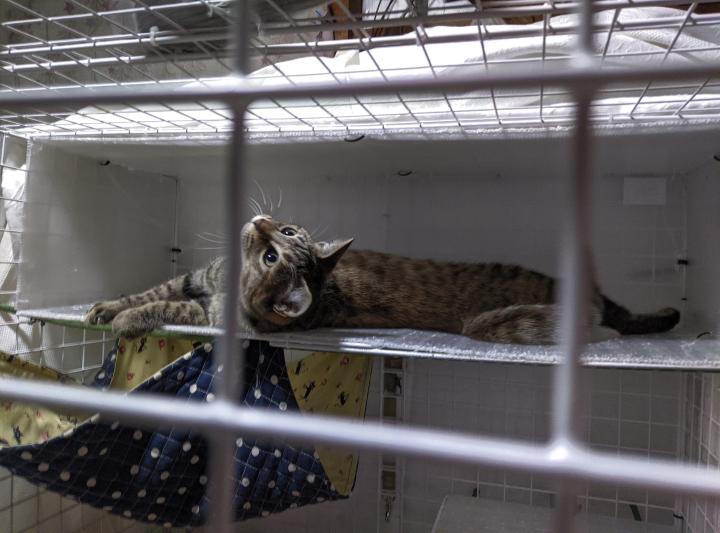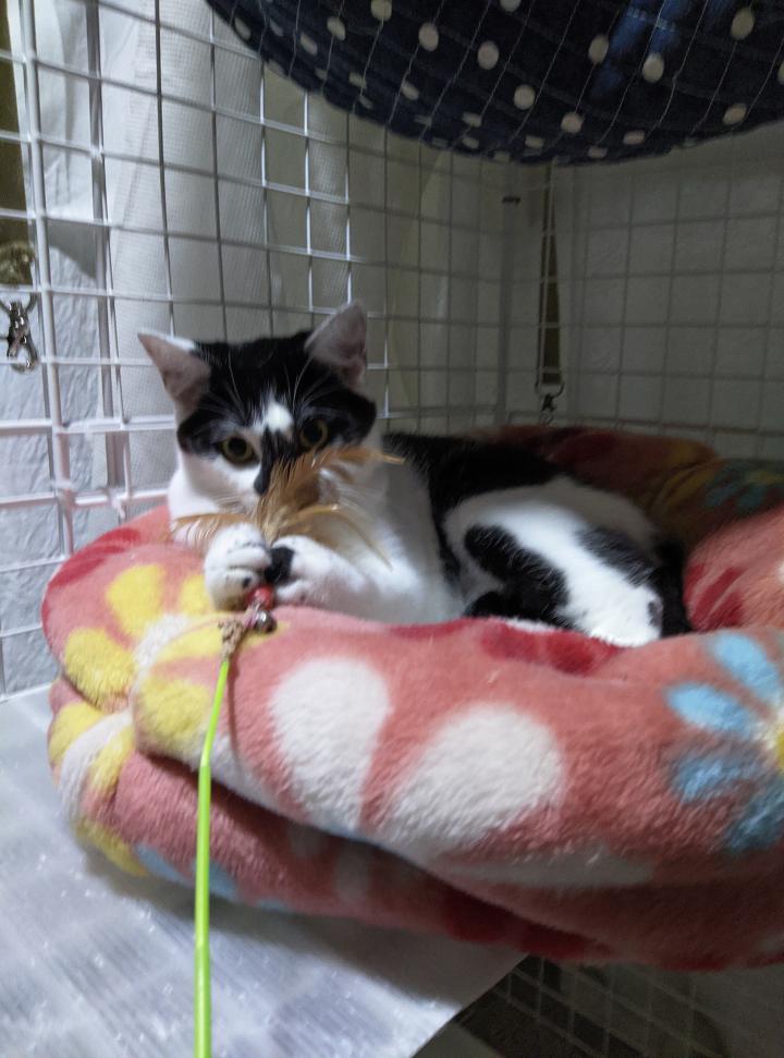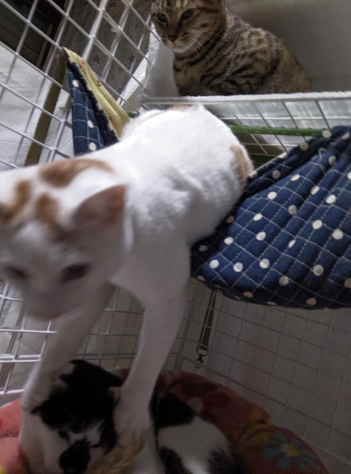 キョウはゲージの中でリラックスした状態で触らせてくれるようになりました。