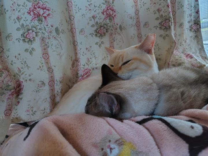 シャーッ!!💢とお嬢さんがお怒りモードでマロンさんの所に逃げてました😅