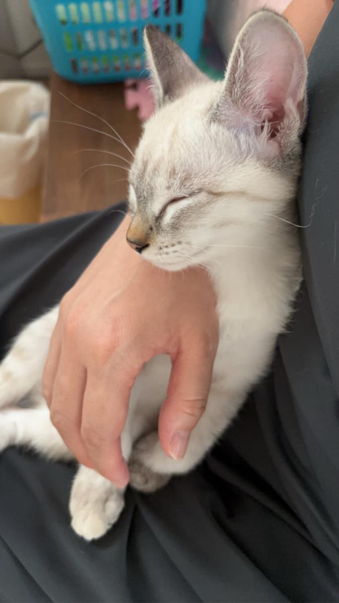 娘はペット反対派、私と主人と息子は犬派で小型の室内犬が飼いたいねと話していたのに、動物愛護センターでの譲渡会へ行ったのをきっかけに、あれよあれよと話が進み、子猫のかりんを迎え入れる事になりました。