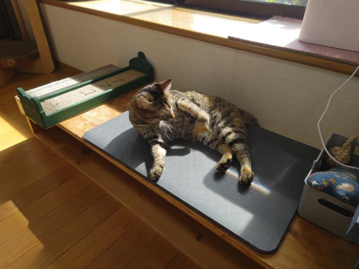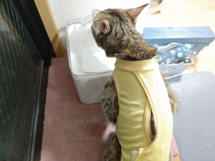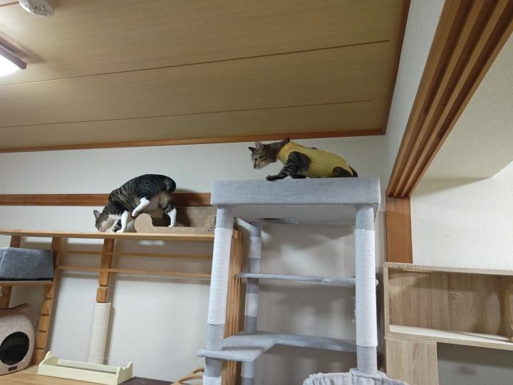 ご飯も食べないしずっと布団の中で、水を飲む時とトイレくらいしか出てこないひきこもりつぷりで心配しましたが、もうすぐ抜糸と言う頃から少しずつ出てくるようになり、キャットタワーにも乗るほどに