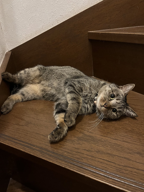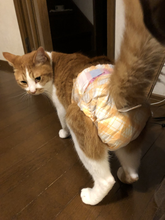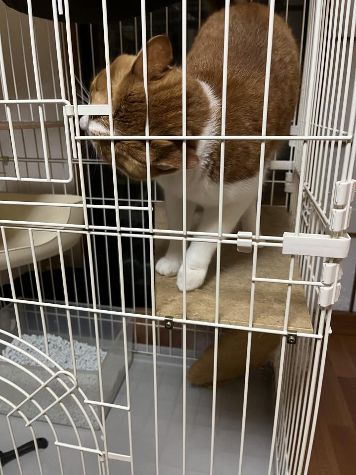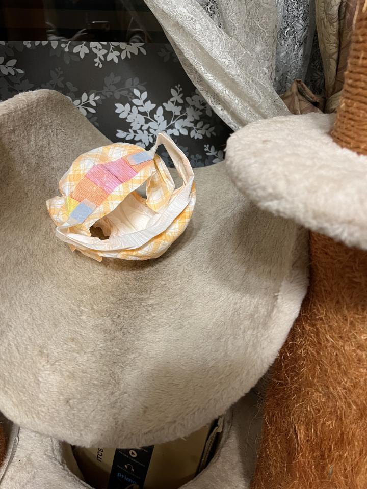 ヒマなのでキャットタワーで遊んでいたら、パンツが脱げました。