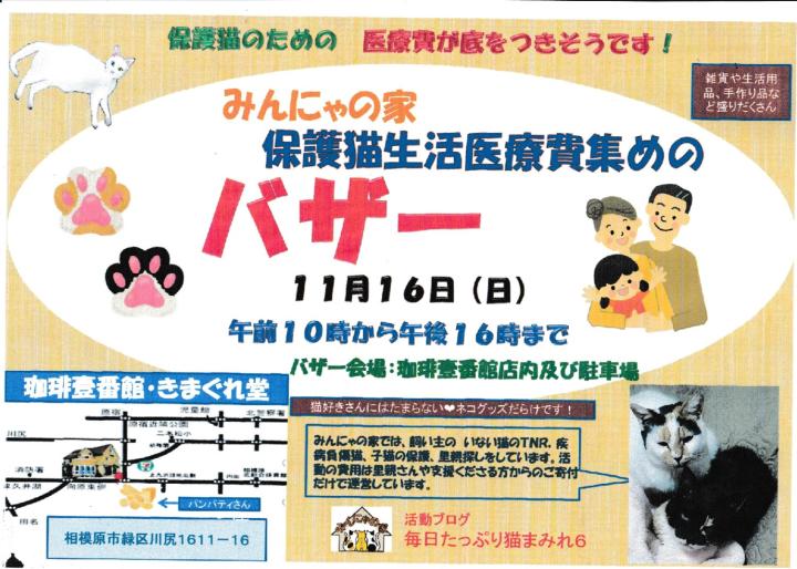 16日の今週日曜日に相模原市緑区川尻のきまぐれ堂珈琲壹番館さんにて保護猫バザーを開催致します。中古家電やペット用品、猫グッズなど掘り出し物もたくさんあります。