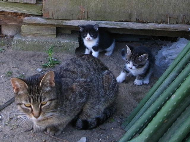 父が畑をいじってたら、母猫さんが見守る中、子猫がわやわやと小屋から出てきたそうです。