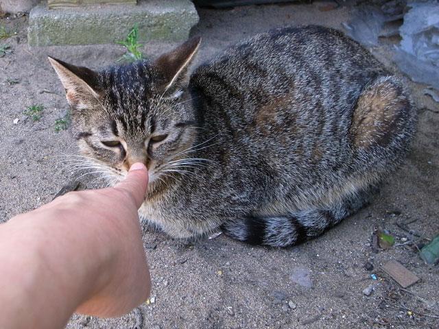 母猫さんですが、私には餌を食べてる時は触らせてくれたり、指をさしだすとふんふん匂いを嗅いでくれる程度には慣れてます。