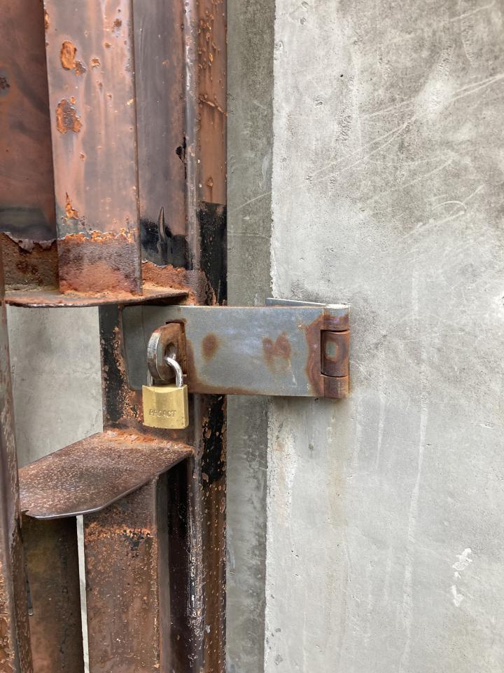 重い鉄製の扉をしめ南京錠をしなくちゃいけない、固いので気をつけて寄せていた