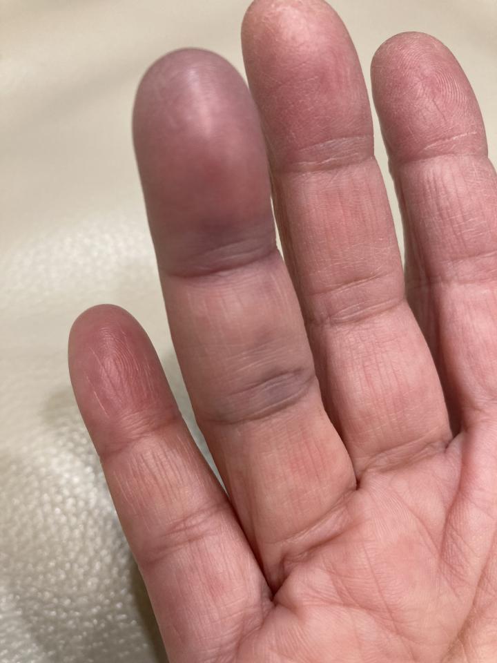 着替えて仕事場で手を洗ってみたら腫れてるし指が曲がらない