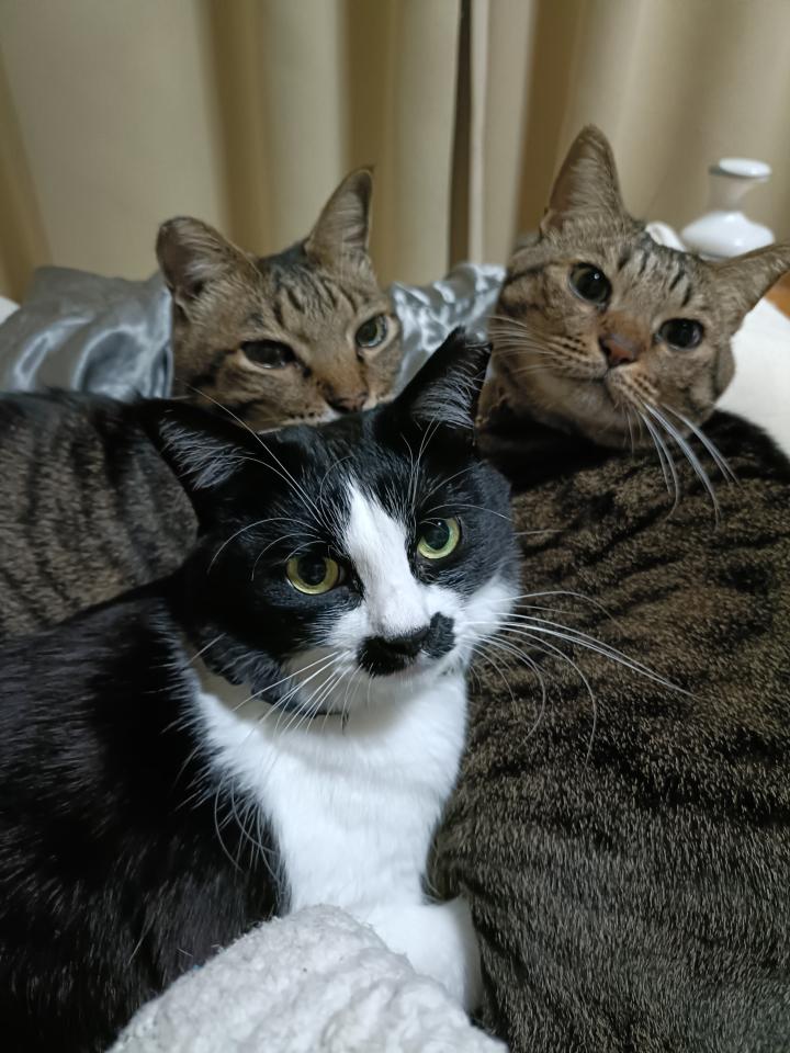 凄いタイミングで4人家族(子猫を保護)になってしまいました。賑やかな毎日を送っています。更に4年後に1歳のさくら猫?を保護しました。 この幸せを噛みしめて、これからも面白楽しくやって行きたいです。