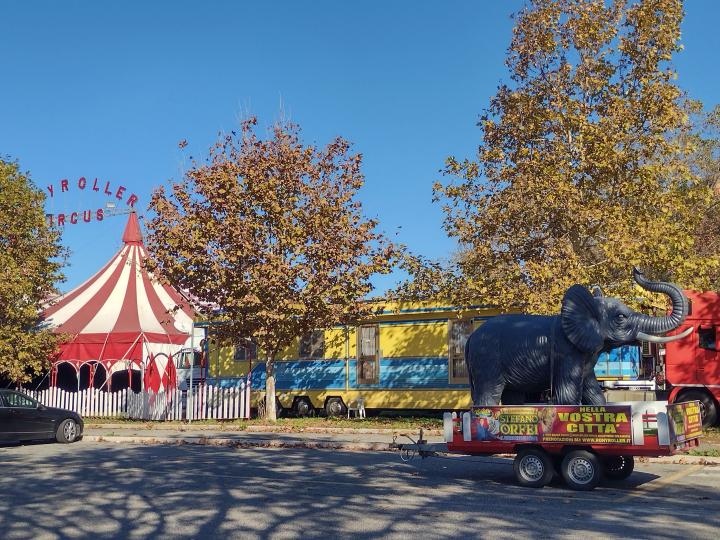 宣伝車とすれ違い、たくさんの動物、有名サーカスファミリーの後継者も参加してるとのこと