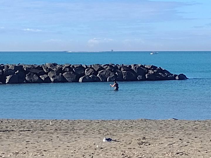 先週撮影、夏場は泳ぐ人も多かった潮溜まり(?)に入っている人にビックリ