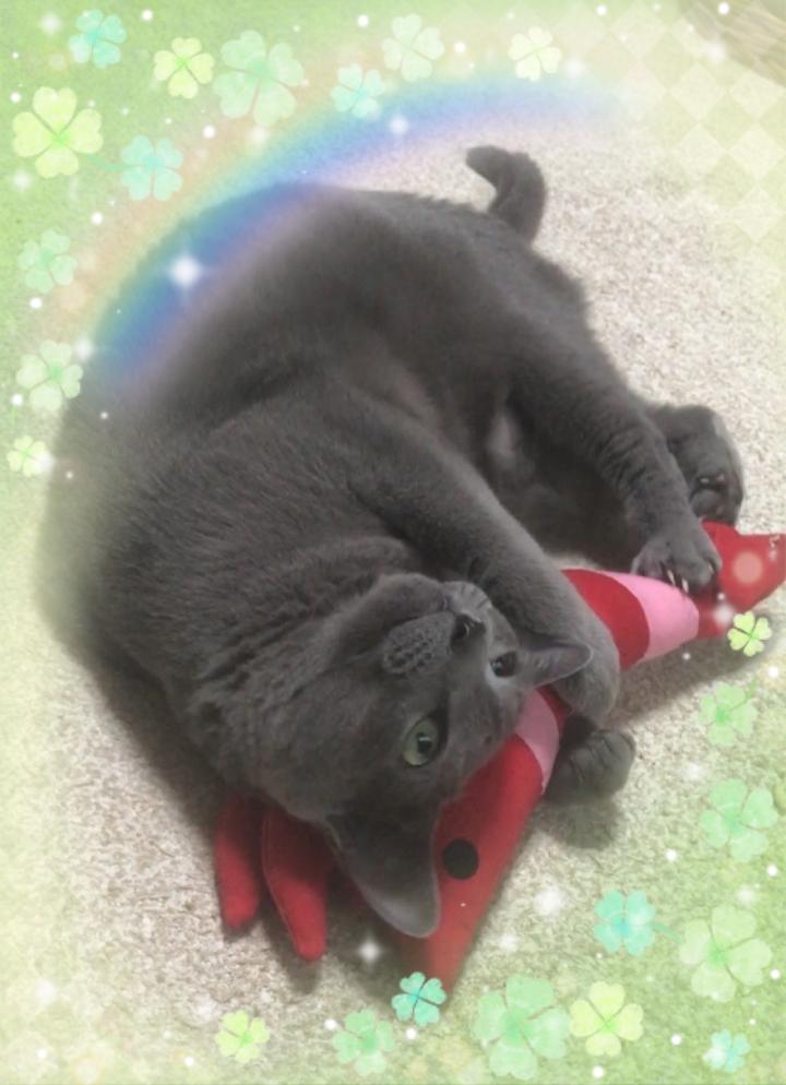 うちの子じるしのリボン🎀はライちゃんのグレーの毛並みに似合う上品なピンクのリボンにしました。