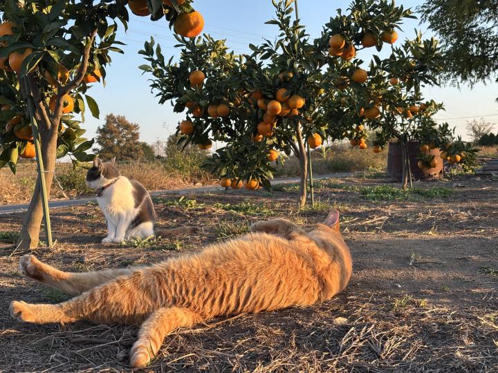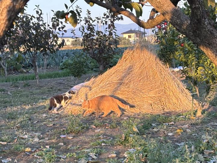 ワラ山が気になって、いつまでもぐるぐる🌀してる2人。