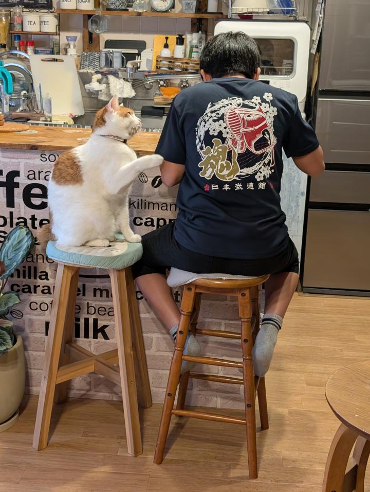 大好きなかいちゃんが食べてるものが気になって気になって、、、「ねぇ、ちょっとちょうだいな」ってチョンチョンしちゃった!