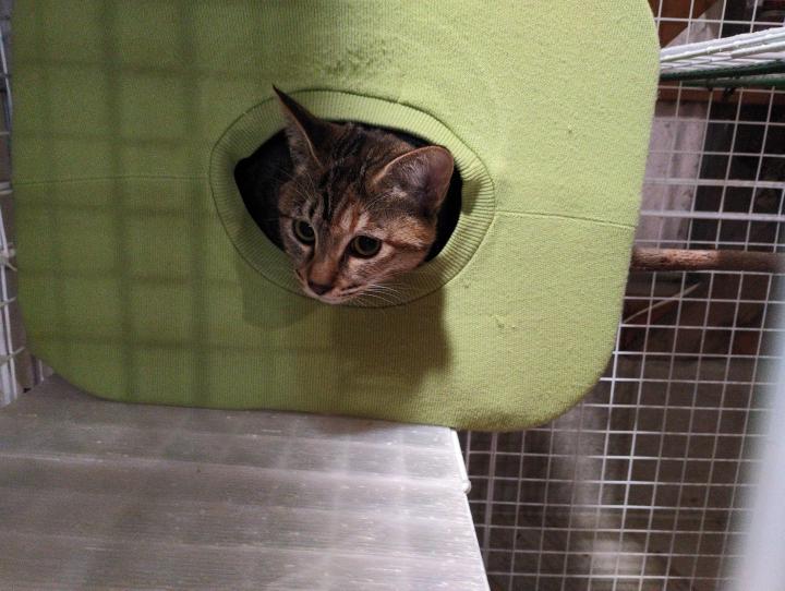 この前設置したドーム型ベット(仮)ですが、さっそくかみちぎりすでにボロボロです。