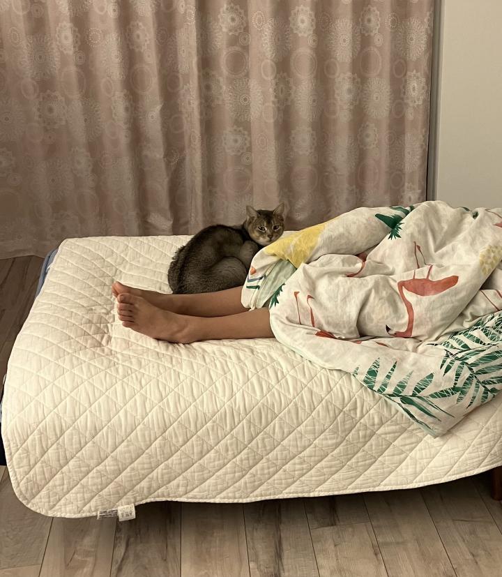 🏊♀️部活もやって早寝すると添い寝するニャ😸
