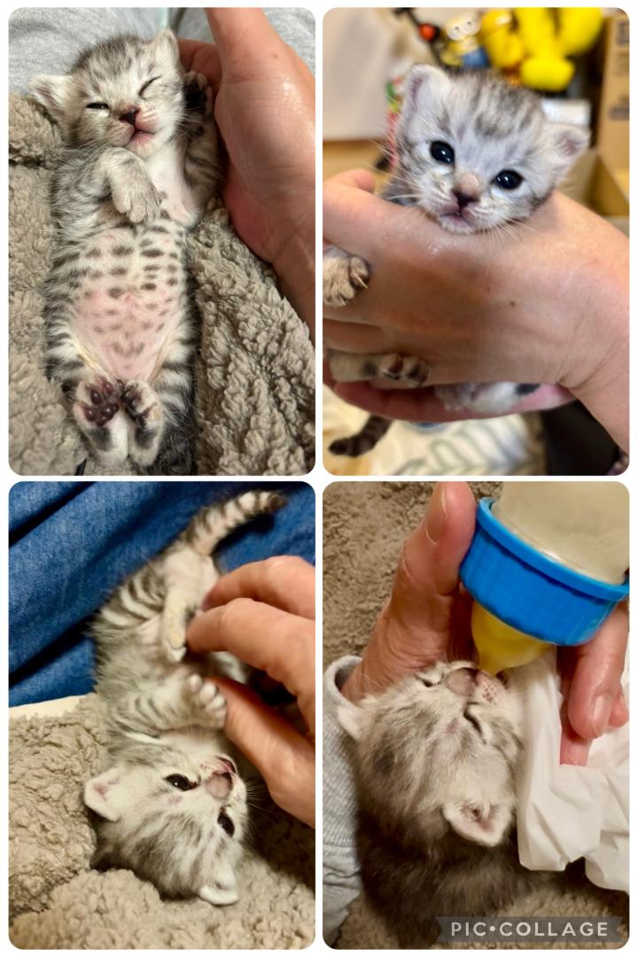 見つかったのはまだ目が空いて間もない乳飲子のサバトラの赤ちゃん🐱