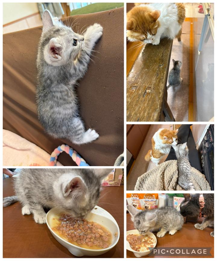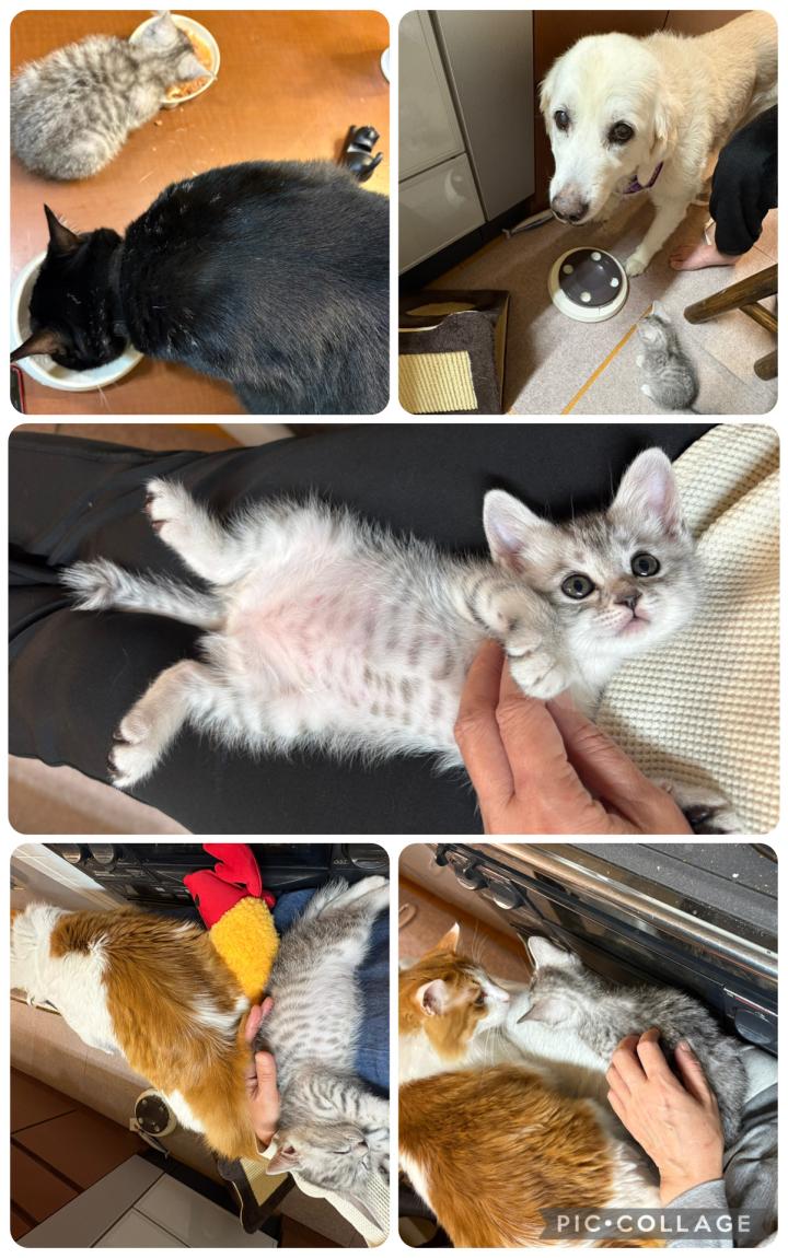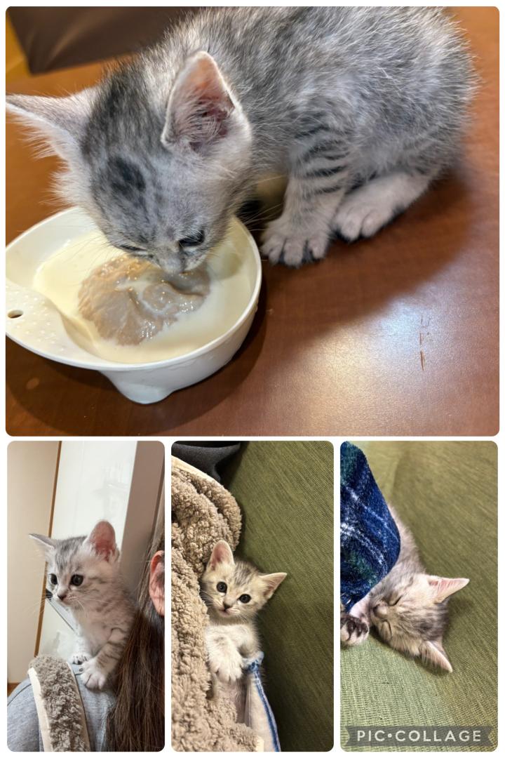 5匹目のニャンコという事もあり、里子に出す事も考えて居たのですが、完全母乳だったため、人間の我が子には授乳や夜中の育児経験が皆無だった旦那さんが今回授乳、夜中の育児、排泄など自分も育児した初めての子だったので「お母さん、4匹も5匹も一緒やと思わへん?」と、まるで私の様な事を言い出して(笑)寅ちゃんは無事我が家の一員となる事になりました☺️✨